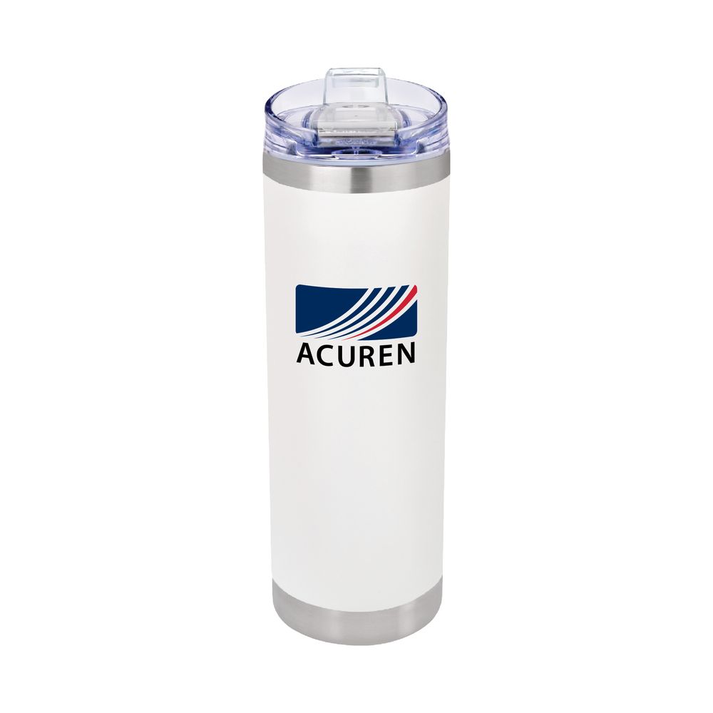 Dual walled Stainless Steel construction. Lead-free in all accessible components. Features a screw on, spill-proof AS plastic flip top design with Tritan snap locking closure lid. Durable powder-coated finish with Stainless Steel top and bottom rims. Sweat-free design.